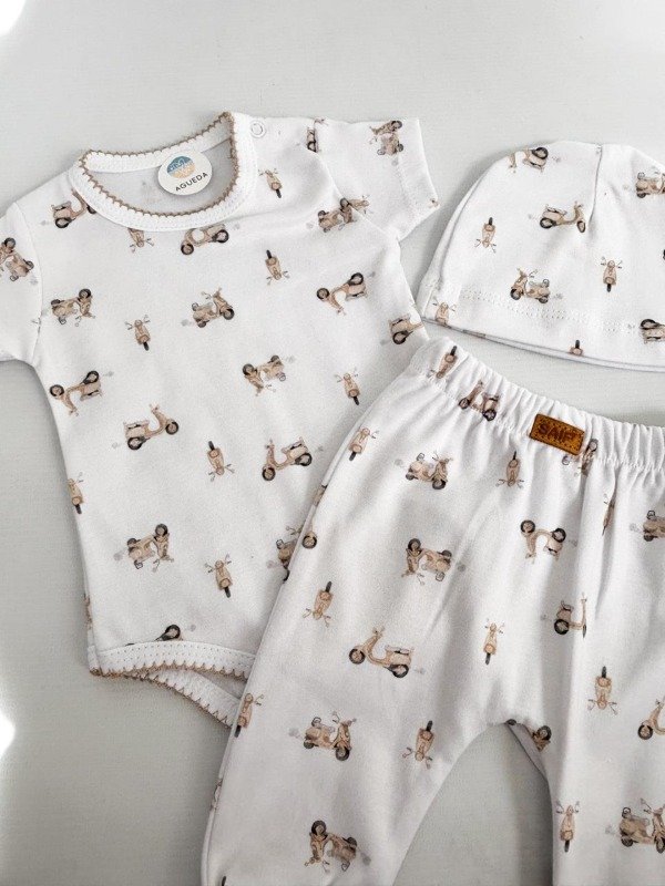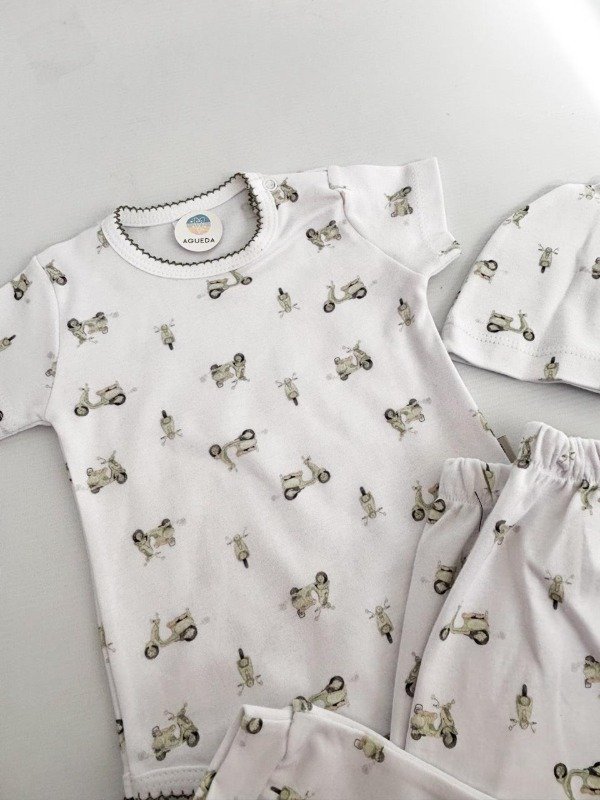 El body es de manga cortas, tiene detalles de picot en el cuello y en las piernitas